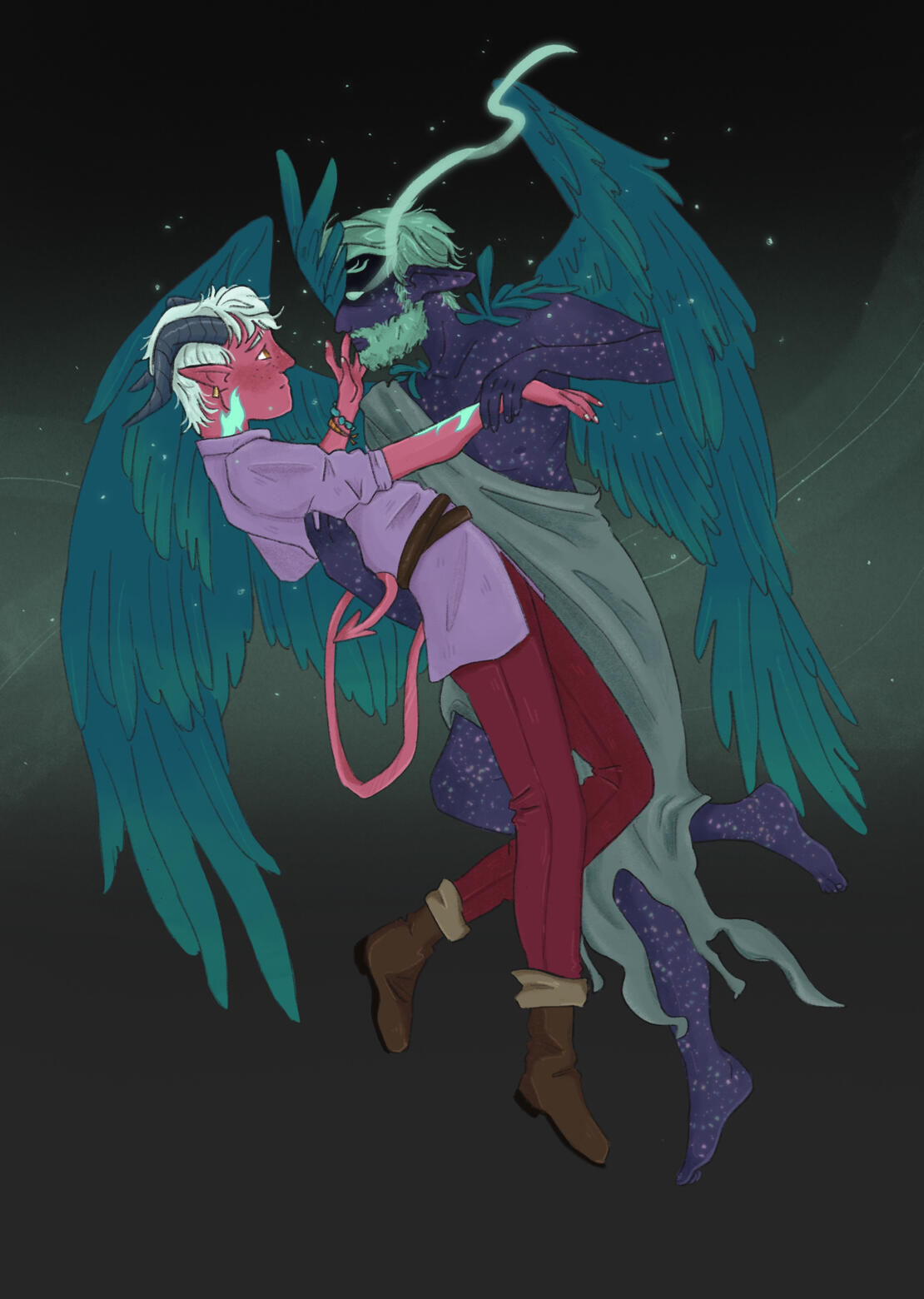 original characters and fanart, stylized real people, fantasy / TTRPGs races, simple sci-fi, mild NSFW, mild gore, simple backgrounds.✸ Won't draw